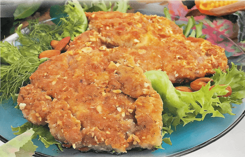 Slice the meat, dip it in batter, and fry on both sides in vegetable oil until cooked.