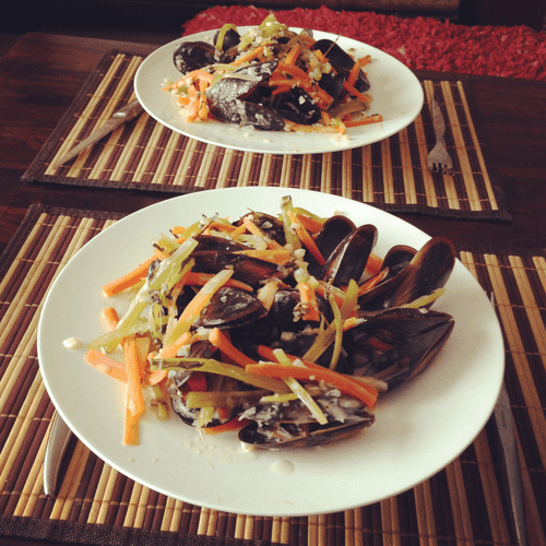 Mussels in creamy sauce with vegetables are a true embodiment of Mediterranean gastronomy, combining the freshness of seafood and the delicate creamy texture of the sauce. This recipe, hailing from coastal regions, represents the harmony of sea and land, while white wine adds a refined acidity that enhances the flavor of the mussels. The tender cream pairs with the aroma of basil, and celery and carrot provide a light crunchy texture. Mussels cooked in their own juice retain juiciness, while sautéed shallots and garlic bring a savory depth. Serving with crispy croutons makes this dish perfect for a romantic dinner or an evening of gastronomic delight, where each bite is filled with aromas of the sunny coast and sea freshness.