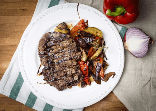 Ramsteak with vegetables is the embodiment of simplicity and flavor in Russian cuisine. This dish is rooted in the traditions of meat steaks but emphasizes lightness and juiciness through a harmonious blend of beef and fresh vegetables. Tender meat, pounded thin, is quickly fried to retain its juiciness and rich flavor. Vegetables sautéed over high heat with garlic and thyme develop a fragrant crispy crust, while the sweetness of cherry tomatoes adds freshness. The finishing touch is a balsamic sauce that adds a subtle tang and highlights the richness of flavor. Ramsteak with vegetables is an ideal choice for those who value balanced nutrition and seek harmony in flavors while enjoying juicy beef with appetizing vegetables.