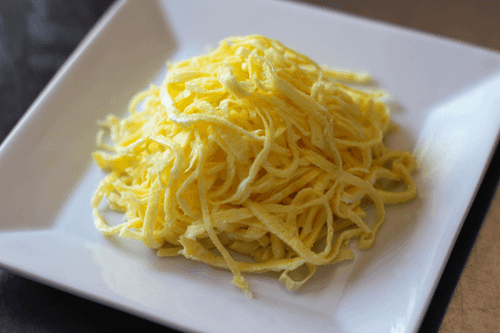 Fried noodles with egg, sesame and soy sauce