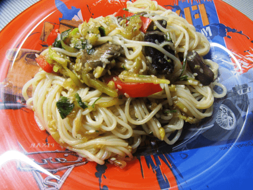 Asian rice noodles with sweet pepper and zucchini