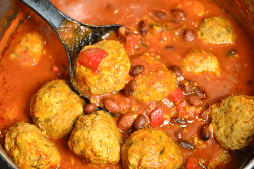 Diet meatballs with beans in tomato sauce