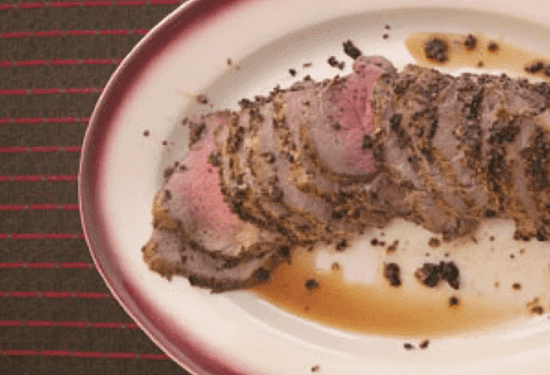 Place the beef on plastic wrap and rub with oil, salt, mustard, pepper, rosemary, and thyme. Wrap in plastic wrap and let marinate at room temperature for about 1 hour.