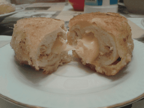 Beat 3 eggs lightly and add salt. Pour breadcrumbs onto a plate. Heat a pan and pour vegetable oil into it. Dip the resulting rolls first in breadcrumbs (especially the edges, to seal better), then in eggs, then again in breadcrumbs, and place them in the pan. Fry on medium heat for 10-15 minutes.
