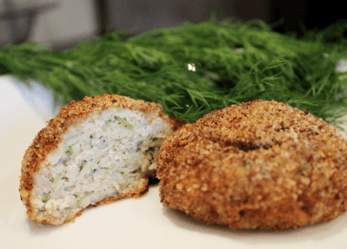 Pour breadcrumbs into a separate plate and start creating. Shape into a patty, coat in breadcrumbs, and place on a baking sheet lined with parchment.