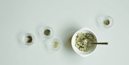 To prepare aromatic oil, thoroughly mix - butter, fennel seeds, crushed black pepper, zest of half a lemon, half a teaspoon of dill, and a pinch of salt.