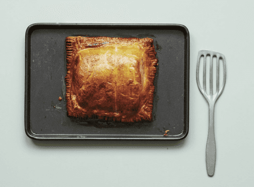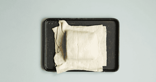 Cover with a second rectangle of dough and press it firmly around the salmon.