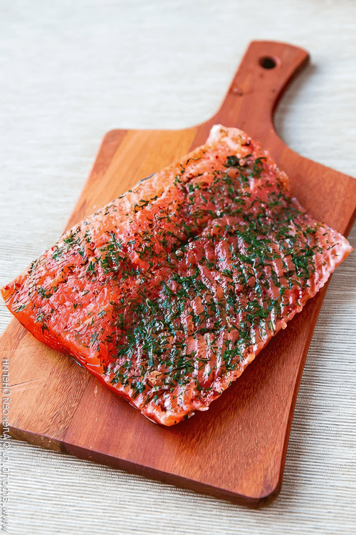 Place the container in the fridge, after 10 hours drain the released liquid and flip the fish for even salting, then after 20 hours take it out of the fridge, quickly rinse and wipe each fillet with a paper towel to remove excess salt.