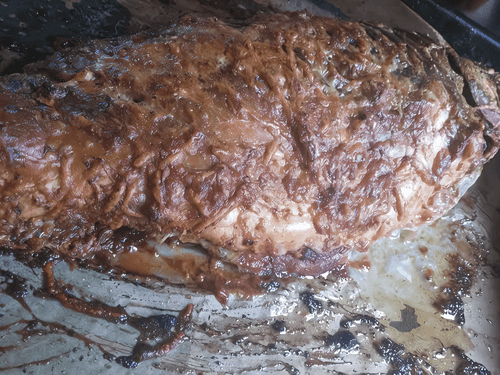 Golden carp baked with garlic and pesto