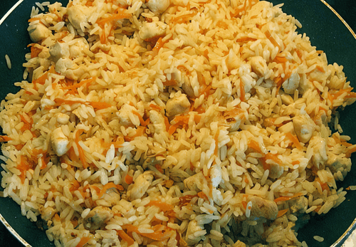 Golden pilaf with chicken is a fragrant and hearty dish rooted in Uzbek cuisine, where pilaf is not just food but a true symbol of hospitality. In this version, tender chicken combines with the rich flavors of sautéed onions and carrots, while cumin seeds add a distinctive Eastern aroma. The rice absorbs all these rich nuances, achieving an appetizing golden color and softness. This dish is perfect for both cozy family dinners and festive gatherings.