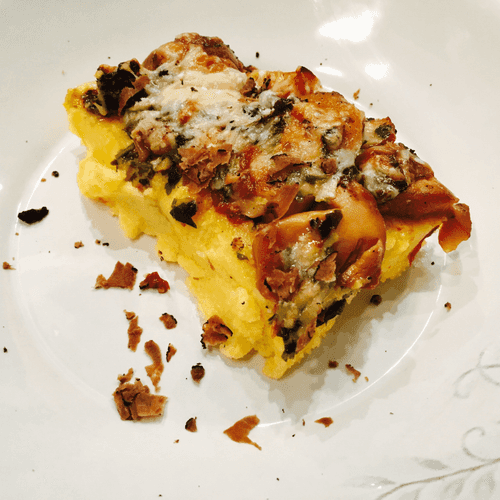 Polenta with white mushrooms is a dish infused with the spirit of European cuisine, rooted in Italian traditions. The delicate, velvety polenta serves as an ideal base for the aromatic combination of white mushrooms, garlic, and white wine. The white mushrooms add a forest touch to the dish as they unfold in creamy butter and brown to a golden crust. Garlic adds zest while lemon juice and parsley refresh the flavor. Baked under a layer of Gruyère cheese, it gains a rich texture and a light cheesy crust. This versatile dish is perfect for a cozy family dinner or an elegant meal paired with a glass of white wine. Serve hot and enjoy its deep, warming notes.