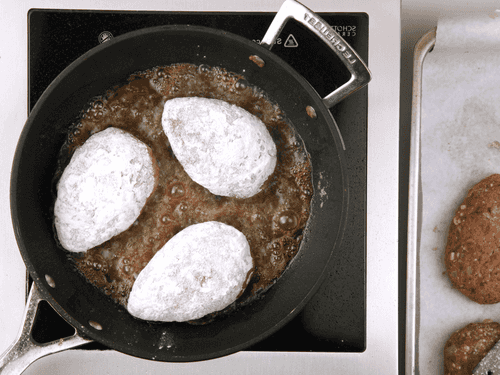 Take out the minced meat, beat it again, and shape the patties into a flat drop. Coat the patty in flour. Fry in vegetable oil on both sides and bake in the oven for 15 minutes at 180 degrees.