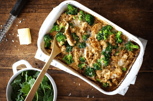 Chicken with broccoli in creamy sauce