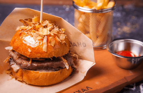 The Smoke Burger is a true embodiment of the taste of fire and smoke. Its history begins in grilling traditions, where meat is enriched with the aroma of open flames. The star of this burger is a juicy patty made from a blend of beef chuck and ribeye, grilled and generously brushed with butter for rich flavor. Mushroom sauce adds tenderness and depth, while crispy bacon brings salty notes. The bun, glazed with unagi sauce and topped with tuna flakes, provides unique texture and a finishing touch. This burger is perfect for lovers of rich, smoky flavors and will be the star of any dinner.