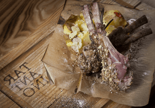 Veal chop with mashed potatoes and Ali-olio sauce is an exquisite dish of European cuisine that combines tender meat with aromatic herbs and a spicy sauce. Historically, veal dishes were valued for their tenderness and rich flavor, and the combination with rosemary and garlic makes it truly noble. Grilled chop covered with crushed pumpkin seeds acquires a crispy texture and nutty undertone. Mashed potatoes infused with olive oil, garlic, parsley, and a hint of chili complement the meat with velvety tenderness. This dish is perfect for a festive dinner or special occasion, impressing with its richness of flavor and harmony of ingredients.