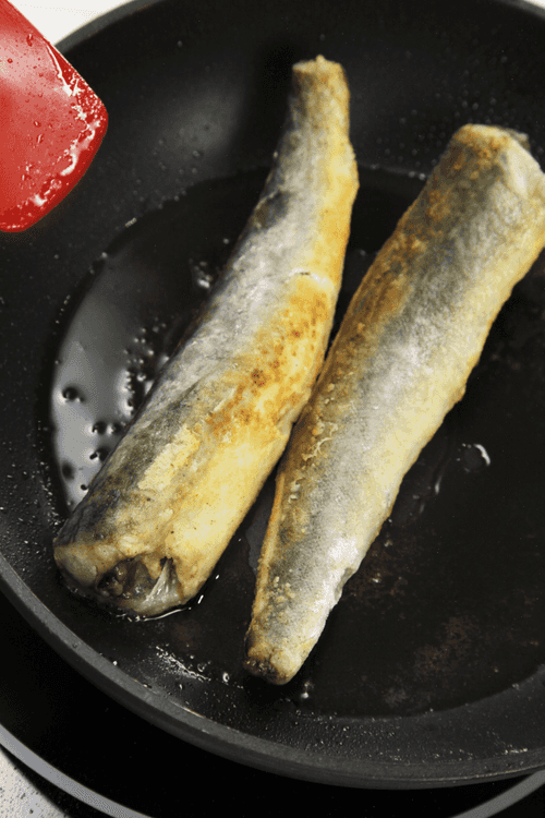 Coat the fish in a mixture of flour, salt, and pepper, and fry on both sides until golden brown.