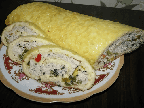 Cheese and egg roll with chicken mince is a harmony of flavors and textures that delights from the first bite. The tender, airy base of cheese and eggs resembles a golden baked shell, while the juicy chicken mince seasoned with garlic, herbs, and sweet pepper provides richness and aroma. This roll was born from European culinary tradition where the combination of simple ingredients and refined taste is valued. It is perfect as a hot dish and becomes an excellent snack when chilled. Due to its softness and richness, the roll is suitable for a cozy family dinner or a festive table, evoking delight among guests. Its secret lies in the balance of tenderness and spiciness that makes each serving unforgettable.