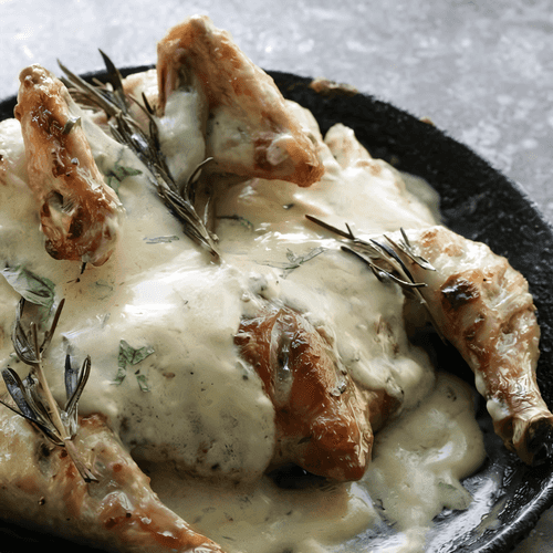 Baked chicken in mascarpone sauce with rosemary