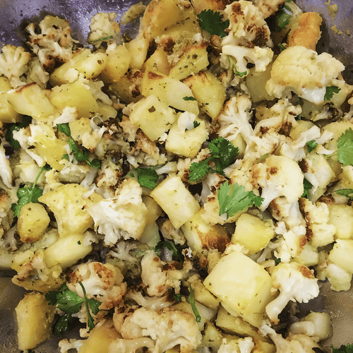 Baked Potatoes and Cauliflower with Pesto Sauce