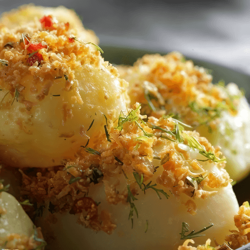 Boiled potatoes with fish roe is a dish that combines simplicity and sophistication. Potatoes boiled in their skins retain their natural tenderness and rich flavor, while dried roe adds a delicate salty note to the dish. A light aroma of garlic and the heat of chili pepper enhance the spiciness, while fresh dill refreshes and completes the composition. This dish is perfect for a cozy home dinner or a festive table. Inspired by American cuisine, this recipe embodies a balance between heartiness and delicacy of flavors. Serving hot potatoes with warm roe and butter sauce creates a harmony of textures, making each forkful rich and unforgettable.