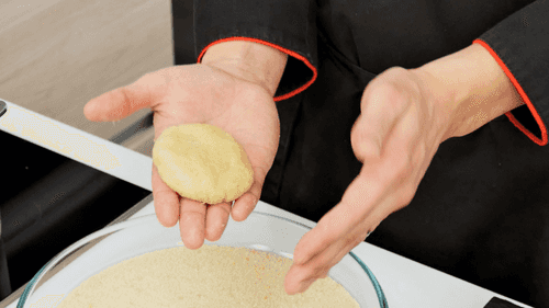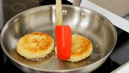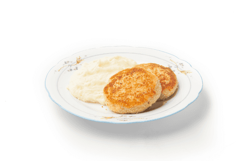 Shape the patties into a round-flattened form with a diameter of 6 cm and a thickness of up to 2 cm. Coat in breadcrumbs or white breading. Form 1-2 pieces per serving.