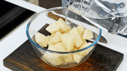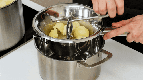 For making mashed potatoes, it is better to use potato varieties with a high starch content. Peel the potatoes of uniform size, boil until cooked, drain the water, dry the potatoes, and mash them while hot. At 80°C, the cells containing starch paste are elastic and remain intact during mashing. In cooled potatoes, the cells become brittle, break during mashing, releasing paste, resulting in sticky, gooey mash that worsens its taste and appearance.
