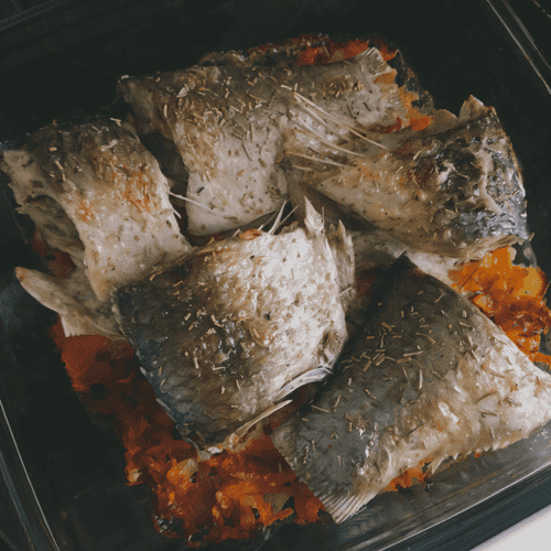Carp baked under cheese is an exquisite dish of Jewish cuisine that combines the tenderness of fish with the rich flavor of melted cheese. Historically, carp is an important element of Ashkenazi Jewish culinary traditions, especially in festive meals. In this recipe, the fish is marinated in a fragrant mixture of sour cream, spices, and lemon juice, then baked on a bed of onions and carrots, acquiring a soft texture and depth of flavor. The final touch is a golden crust of grated cheese that adds special charm to the dish. Carp under cheese can be served as a festive treat or a cozy home dinner. The combination of creaminess, slight acidity, and tenderness makes it an ideal choice for lovers of harmonious taste.
