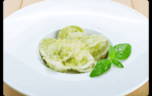 Green ravioli with cream sauce