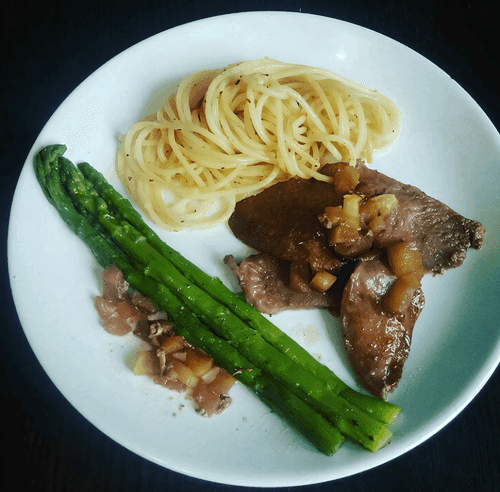 Turkey with apples and asparagus