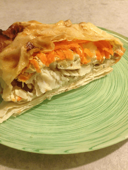 Fish baked in lavash is a harmony of crispy golden crust and tender, juicy fillet. This recipe resonates with European culinary traditions where the combination of simplicity and rich flavor is valued. Lavash soaked in a sauce of sour cream and mayonnaise wraps the fish, preserving its softness and filling it with spice aromas. Sweet carrots and caramelized onions add piquant notes, creating a balance of flavors. The dish is perfect for both family dinners and festive gatherings, impressing with its tenderness and appetizing appearance. Baked fish in lavash is a convenient solution for those who want to enjoy healthy and delicious food without extra hassle. Simple, quick, and incredibly tasty!