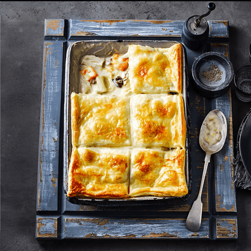 Chicken fillet baked under pastry is a refined dish of European cuisine that combines the tenderness of chicken meat with the lightness of puff pastry. This recipe recalls traditional pies that have long been served to guests in European homes. The creamy sauce with leeks and garlic enriches the flavor, creating a soft and rich texture. The baked crust adds an appetizing crunch to the dish, while the chicken inside remains juicy and tender. This dish is perfect for a festive dinner or a cozy family evening, and its harmonious blend of creamy aroma and golden crust makes it a true gastronomic delight.