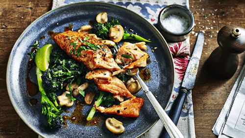 Sicilian-style salmon with mushrooms and broccoli is a harmonious blend of seafood, vegetables, and aromatic spices that embodies the spirit of Mediterranean cuisine. Sicilian gastronomy is renowned for its fresh ingredients, and this recipe is no exception. The delicate salmon fillet infused with lime juice becomes juicy and rich. Mushrooms add a deep, earthy flavor to the dish, while broccoli contributes freshness and texture. The spicy notes of paprika and chili create a light piquancy that enhances the layered flavors. Garlic and parsley complete the composition, filling it with Mediterranean aromas. An ideal dish for those who appreciate the balance of healthy ingredients and refined taste enjoyment.