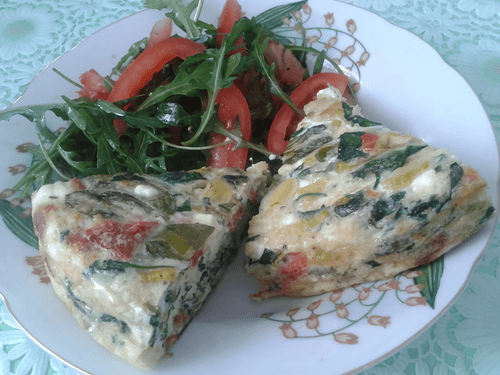 Place the dish in a preheated oven at 160 °C for about 30 minutes (until the frittata is well set).