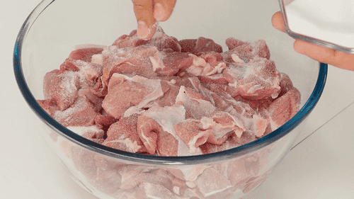 Put the meat in a large bowl and salt it.