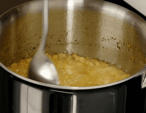 In a small saucepan, heat 100 g of melted butter and sauté finely chopped onion for about 5-7 minutes until it becomes brown and crispy.
