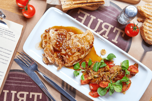Season half of the chicken fillet with salt and pepper, and fry until golden in vegetable oil. Brush the skin with half of the teremki sauce and bake in the oven for 7-8 minutes at 180 degrees.