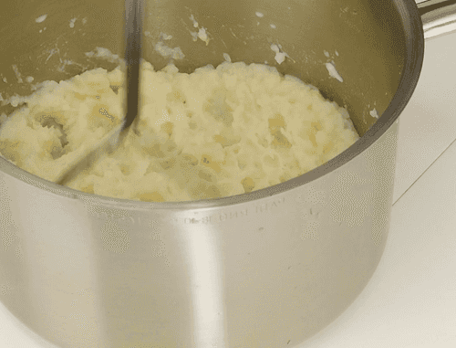 Drain the cooked potatoes, add milk, and mash into a puree. There's no need to try too hard; the puree should be lumpy.