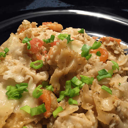 Boil the pasta (in the same pot where the shrimp were placed) until al dente (undercook by 1-2 minutes). Any shape can be used (in my case, farfalle).