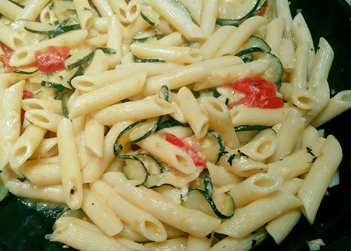 Penne with zucchini and homemade cheese