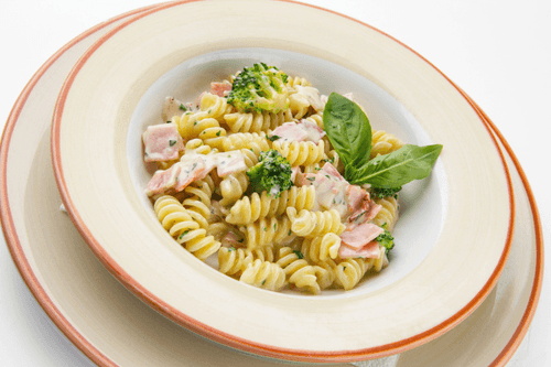 Fusilli with ham and broccoli is an elegant combination of Italian pasta and delicate creamy notes. Born in sunny Italy, this recipe reflects the philosophy of simplicity and sophistication. The spiral fusilli perfectly hold the sauce, soaking up the creamy aroma and saltiness of the ham. Broccoli adds a light freshness and a hint of crunchy texture. Chicken broth enriches the dish, while Grana Padano completes the harmony of flavors with a light spiciness. This pasta is perfect for a cozy dinner or a quick meal when you crave something comforting yet refined.