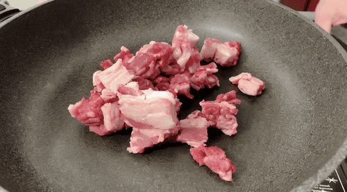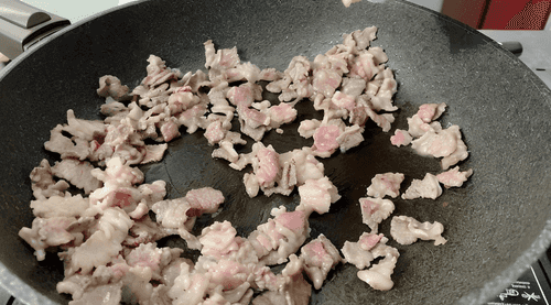 Cut the bacon and fry it in a pan without oil.
