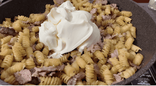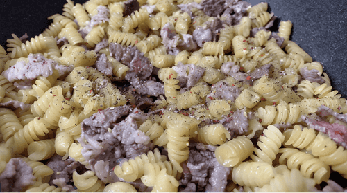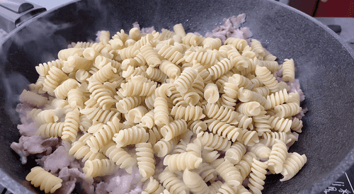 Add raw pasta to the pan.