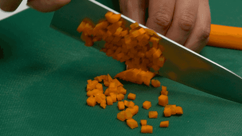 Chop the onion, carrot, and celery into small cubes.