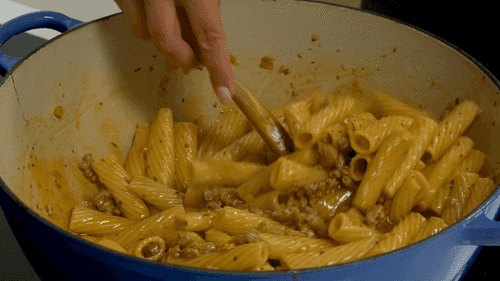 Remove the lid and evaporate the remaining water while stirring the pasta.