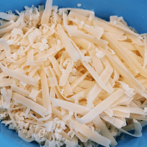 Grate the cheese on a coarse grater.