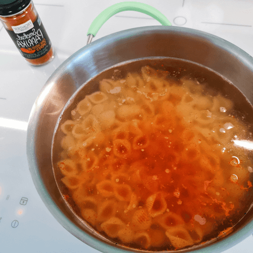 Add paprika one minute before the cooking is done.
