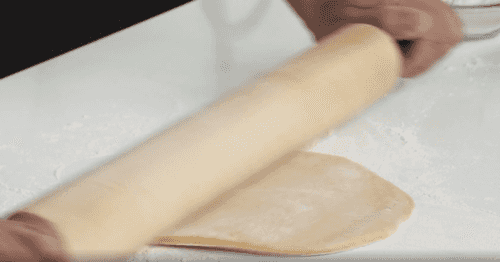 Dust the table and rolling pin with flour, first flatten the dough with your hands into a pancake and dust with flour again, then start rolling.