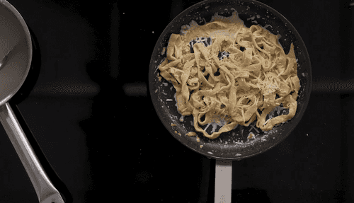 Mix the pasta with the sauce and parmesan, then remove from heat immediately.
