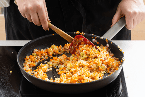 Reduce the heat to medium and sauté everything together for about 15 minutes, stirring, until softened.