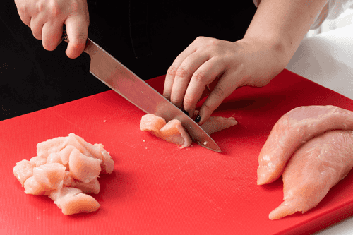 Cut the turkey into 2 cm cubes.